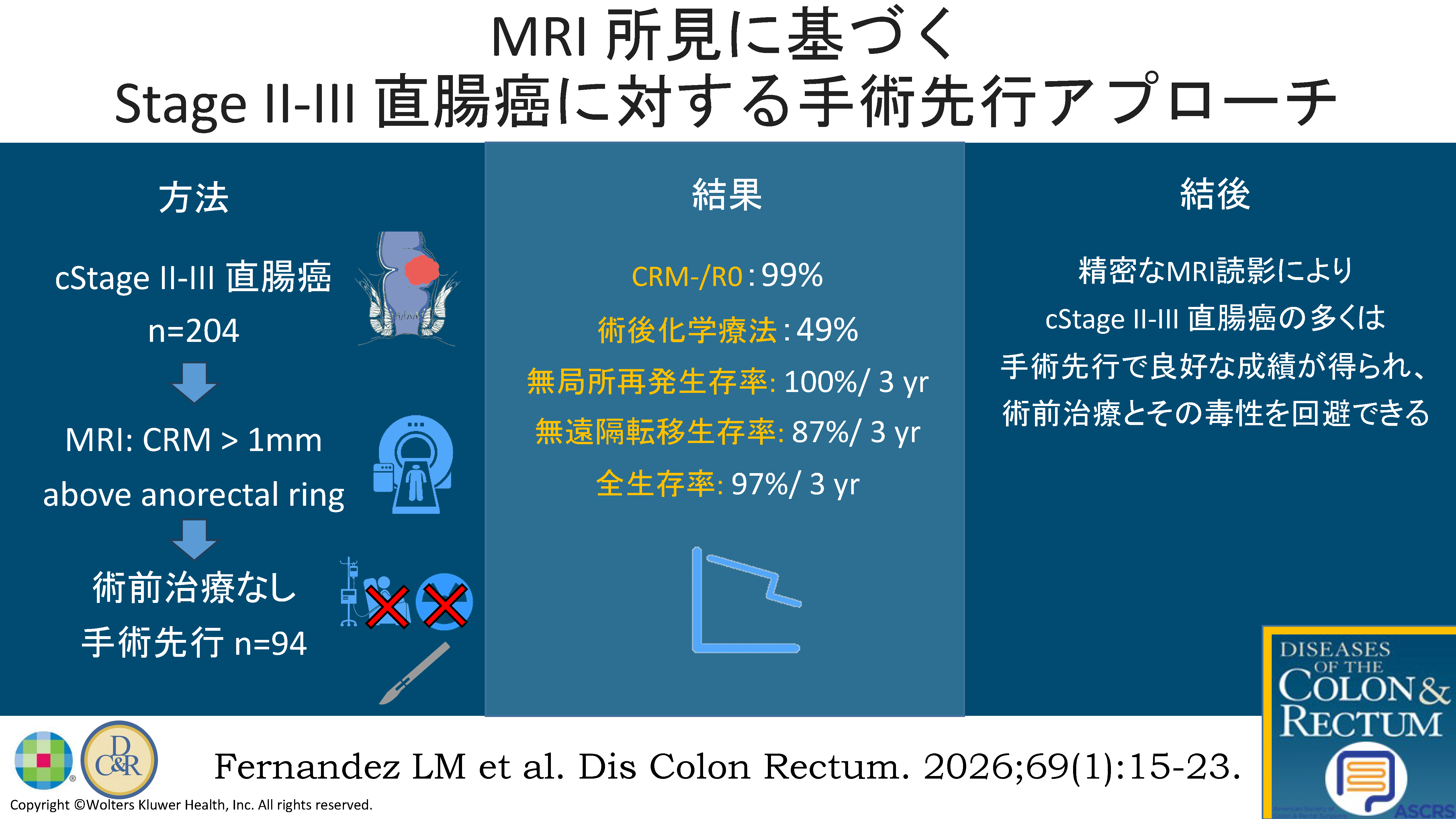 論文: MRI 所見に基づくStage II-III 直腸癌に対する手術先行アプローチ